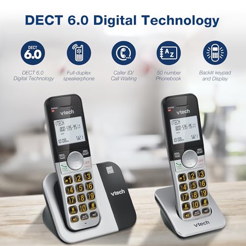 VTech Cordless Phone 2-Handset with Large Display and Big Buttons, DECT 6.0 with Caller ID/Call Waiting, Full Duplex Speakerphone, ECO Mode, Last 10 Number Redial, Easy to Use,VG231-2