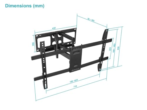 About this item Ultra low profile full-motion mount extends from 2.3" to 15.8" Designed for 40" ∼ 90" displays Tilt Range: 15° down / 5° up Supports up to 132 lbs. Swivel range up to 120° (±60°) › See more product details