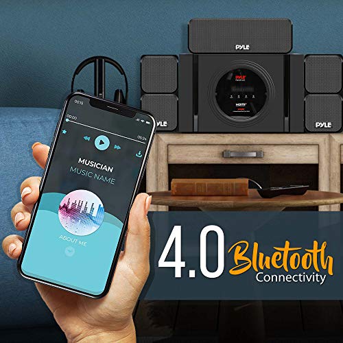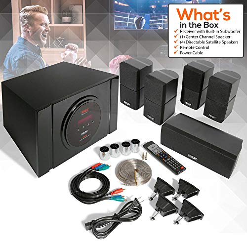 Pyle 5.1 Channel Home Theater Speaker System - 300W Bluetooth Surround Sound Audio Stereo Power Receiver Box Set w/ Built-in Subwoofer, 5 Speakers, Remote, FM Radio, RCA - PT589BT,Black