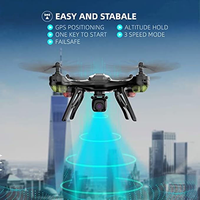 • 【Easy to Fly】One button take off/landing,altitude hold function,keep the drone at a certain height to get a better shooting angle.3 speeds control (slow/mid/fast),offering care-free fly for kids,beginners,pilots.