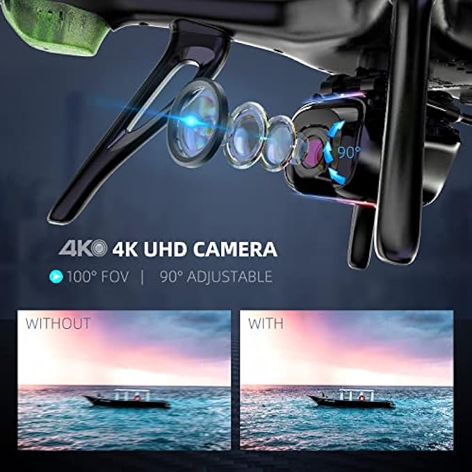 • 【 4K Ultra Clear Camera&5G WiFi】Equipped with a 4K high-definition camera, the lens supports wide-angle and 0-90° adjustment,let you easily shoot amazing videos.Use 5G WiFi to connect to the drone in the mobile APP view the real-time and low latency video taken by the drone, experience the fun of First Person View flying perspective.
