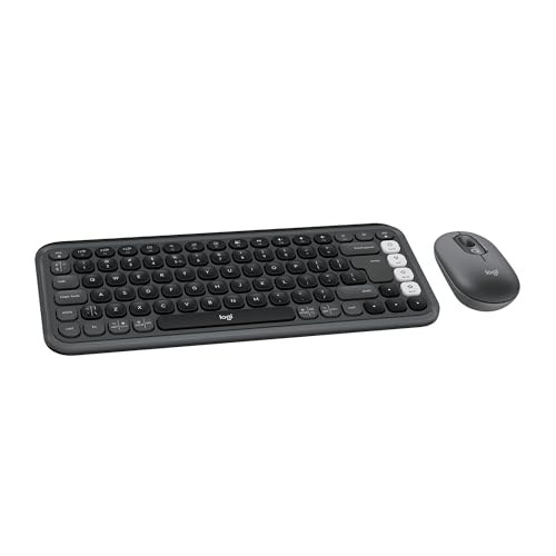 Logitech POP ICON Combo, Bluetooth Keyboard and Mouse Combo, Comfortable Typing, programmable Keys and Buttons, Quiet clicks, Easy-Switch up to 3 Devices - Graphite and Off-White