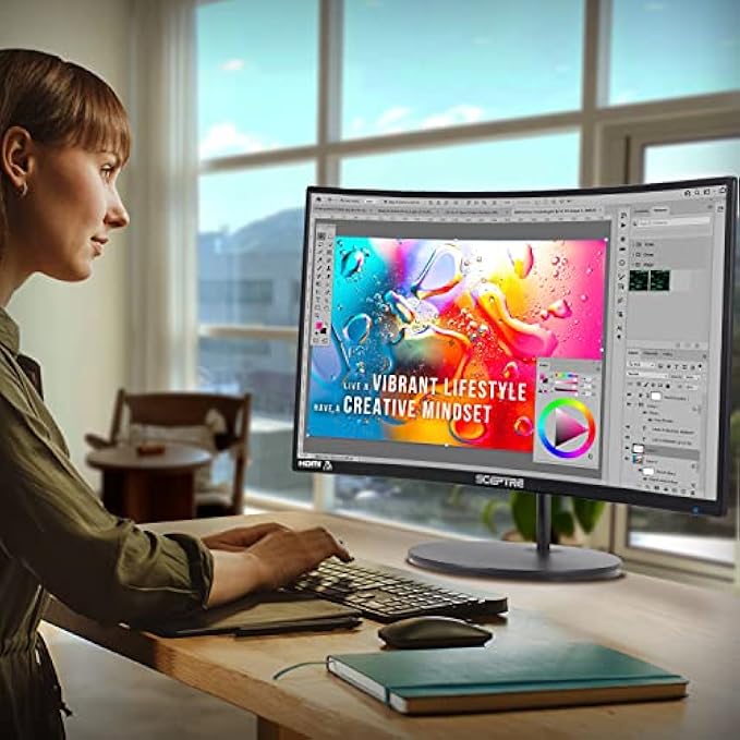 Sceptre Curved 27" FHD 1080p 75Hz LED Monitor HDMI VGA Build-In Speakers, EDGE-LESS Metal Black 2019 (C275W-1920RN)