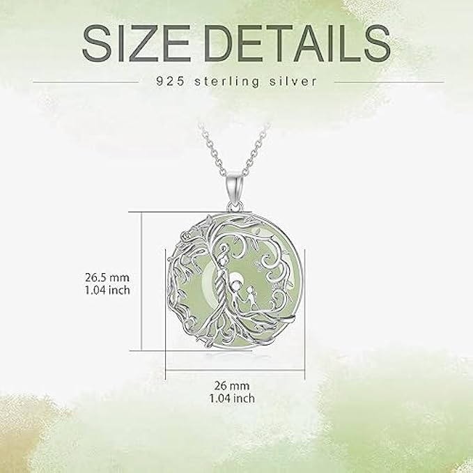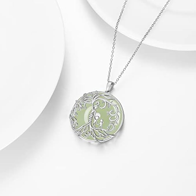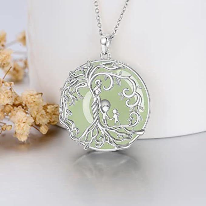 HPQQ Mother and 1 Children/2 Children/3 Children Family Tree of Life Necklace Sterling Silver Natural Jade Necklace for Women Mom Jewelry Mothers Day Birthday Christmas Gifts from Daughter Son