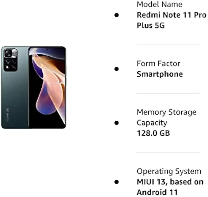 Xiaomi Redmi Note 11 Pro+ Plus 5G + 4G Global 128GB + 6GB Unlocked 6.67" 108MP Camera Night Mode (Not Verizon Sprint Boost Cricket Metro At&T) + (w/Fast Car 51W Charger Bundle) (Graphite Gray)
