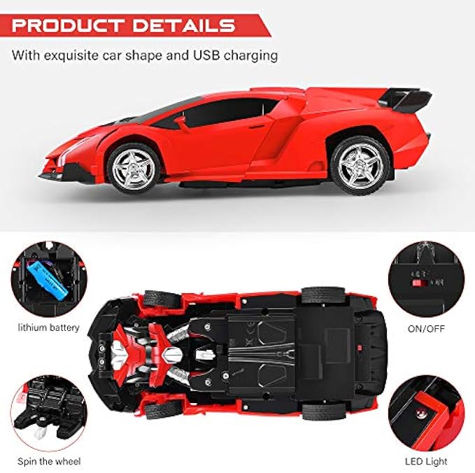 • Perfect Hobby Gift for Kids - Designed for transformer lovers and all kids who love cars, this RC car toy can be used as the best gift choice for Christmas or Birthday. The Rc cars is a perfect toy for boys and girls, keep children busy and fascinated with the transformation, being a hit on the birthday and other holiday parties.