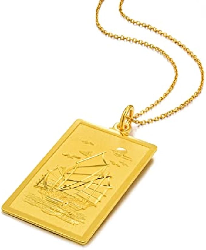 CHOW SANG SANG 999.9 24K Solid Gold Price-by-Weight Gold Sailboat with Successful Wishes Pendant for Men & Women 12673P | [Not Include the Necklace]