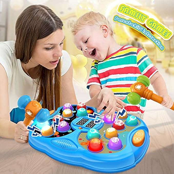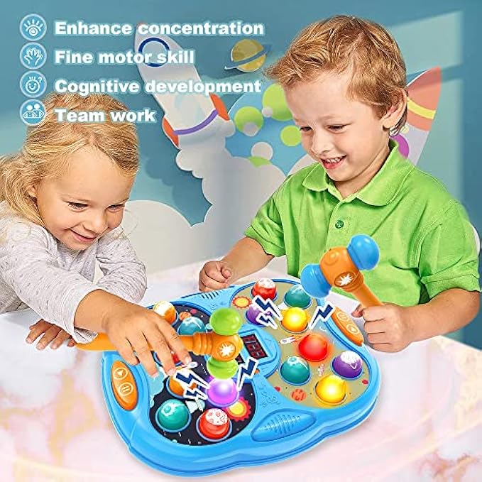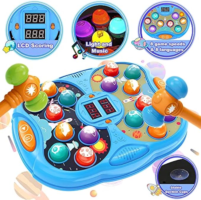 Whack A Mole Game, Learning Montessori Toddler Toy, Space Theme Birthday Toys for Age 3, 4, 5, 6 Years Old Kids, Educational Stem Toy for Boy Girl Autism Sensory Speech Therapy - 2 Pounding Hammers