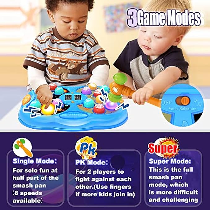 • Safety and Durable - To ensure safety and child-friendliness, every detail matters: it has smooth edges and soft hammers and we used premium materials during production because we know you want only the best for your kids. Rounded angles/edges, not confined to material(BPA-free, non-toxic, and odor-free). Importantly, the smash pan is made of super-sturdy plastic to withstand kids’ powerful and constant whacks and has a sturdy base due to 4 suction cups to prevent slippery while pounding.