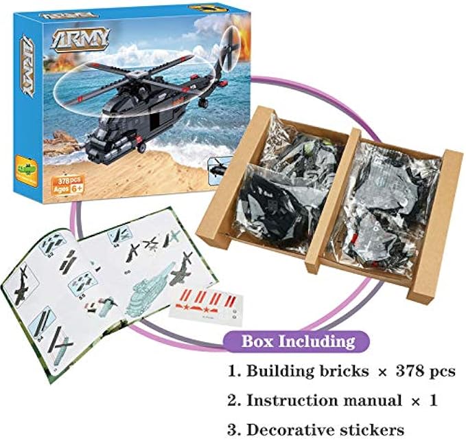 • 【Compatible with Other Brands Bricks】The 378 pieces military helicopter building toy packaged with an exquisite box makes a great holiday or birthday gift for boys and girls aged 6 and up and fans of military collection. The building bricks are compatible with other brands bricks.