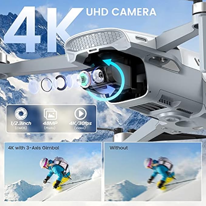 【 4K/30fps Camera and 3-Axis Gimbal】 The T210 Mini Drone Comes with a 4K/30fps Camera and a 3-Axis Mechanical Gimbal that Provides Stable and Smooth Footage. The Ultra-Wide-Angle Lens and H.264 Encoding Format Output Make Your Creations More Inspired.