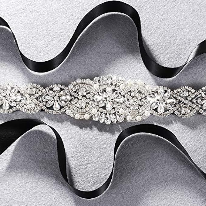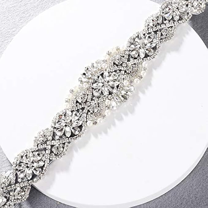 • MATERIALS: Wedding belt is made of 3A+ rhinestones and high quality pearls, will not easy to fade,rust,discolor,corrode, maintain gloss. Wedding dress belt with double-sided satin,more easy to tie.