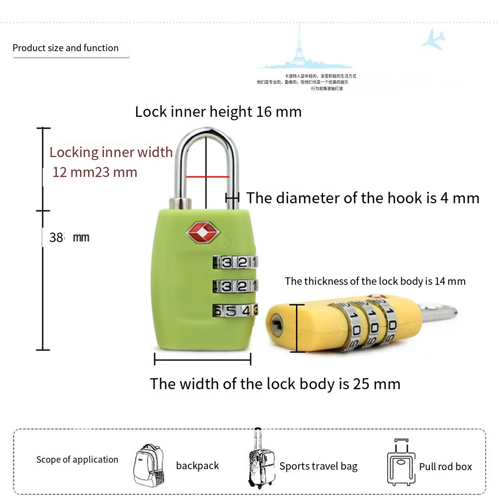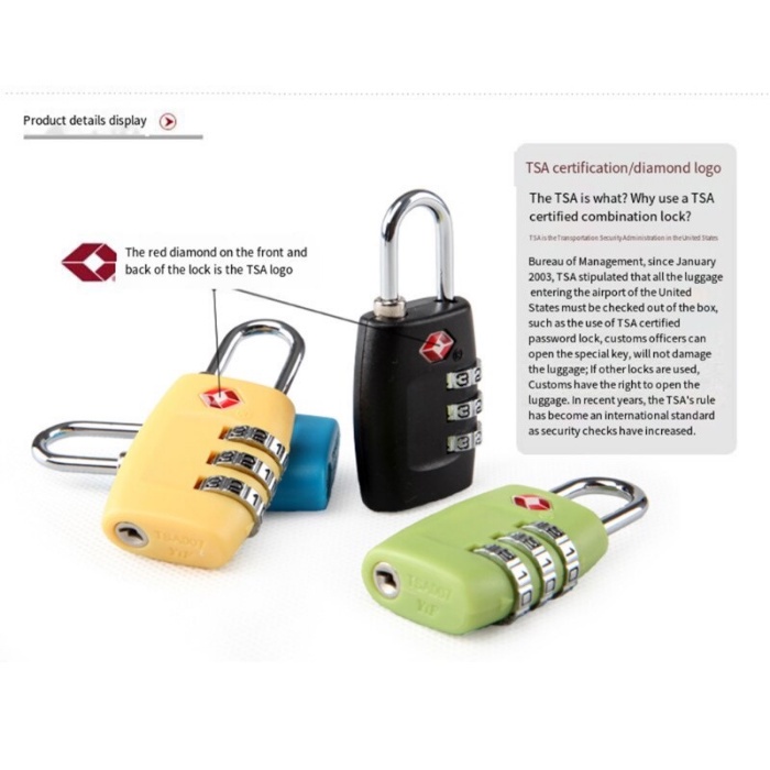 SG Local Seller TSA Luggage Lock 3 Digit Combination Cable Padlock For Travel Suitcase Bags and Gym Lock
