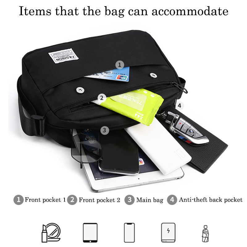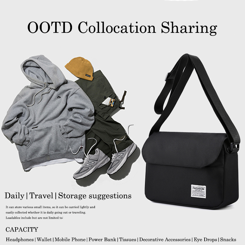 [XKB] 1 [READY STOCK] Waterproof Messenger Bag, Men's Messenger Bag, Functional Tooling Bag, Black Large-Capacity Sports Bag