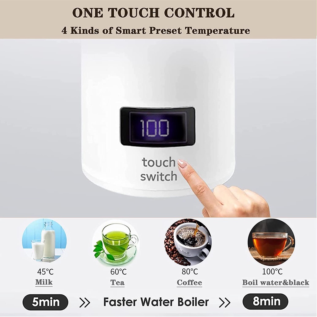 Best Feature(s):small and portable Performance:great Value For Money:yes Received my small portable kettle. Tested it out and it work. Tried out 45degree and then 60degree.. both the temperature water is warm to hot. Will have sound when boiled and cut off the power and then will keep the water at the temperature. Great job ? really serve the purpose. Now no need to be afraid no hot water when oversea time. Wont need to scare using to hotel kettle anymore.. super recommended. Well done seller.. ?? ?