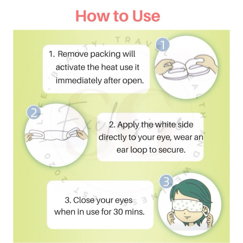 Benefits:Have not started using Usage Experience:Have not started using m Packaging:Small, compact and cute packaging. Read some good reviews of this eye mask, so wanted to give it a try. Have yet to start using but packaging is nice and fast delivery from seller. Thank you seller!