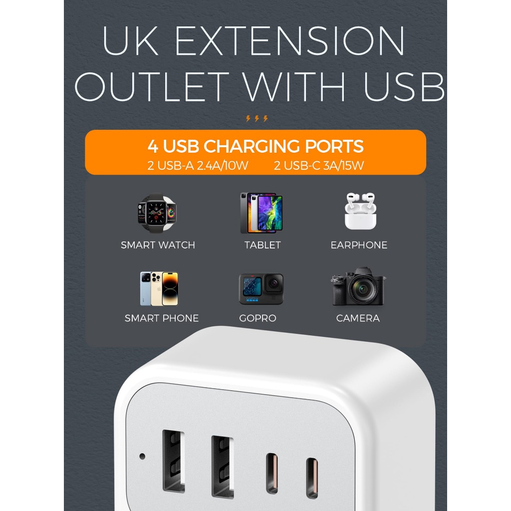 TESSAN Multi Plug Extension Adapter with USB and Type C,2 Way Power Extension Socket Wall plug